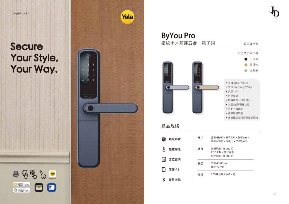耶魯 Yale ByYou Pro 指紋卡片藍芽五合一電子鎖