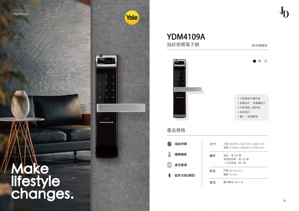 耶魯 Yale YDM4109A 指紋密碼電子鎖