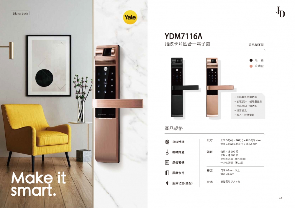 耶魯 Yale YDM7116A 指紋卡片四合一電子鎖