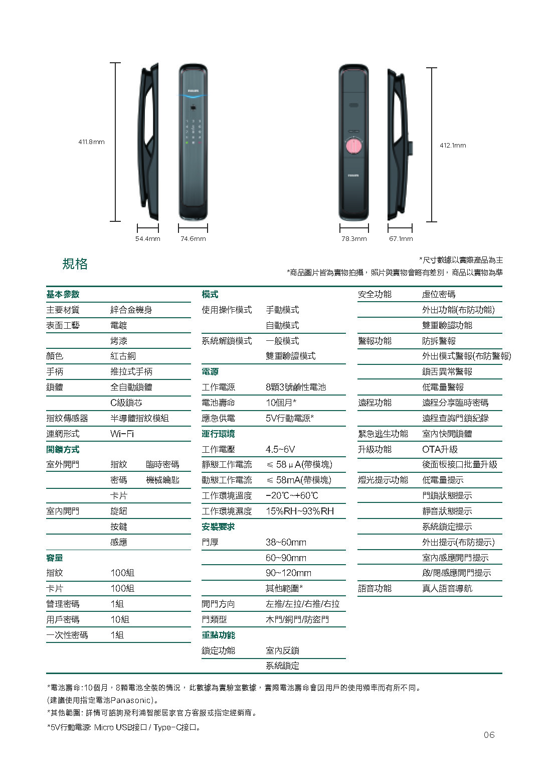 飛利浦 PHILIPS 702E 推拉式智能門鎖