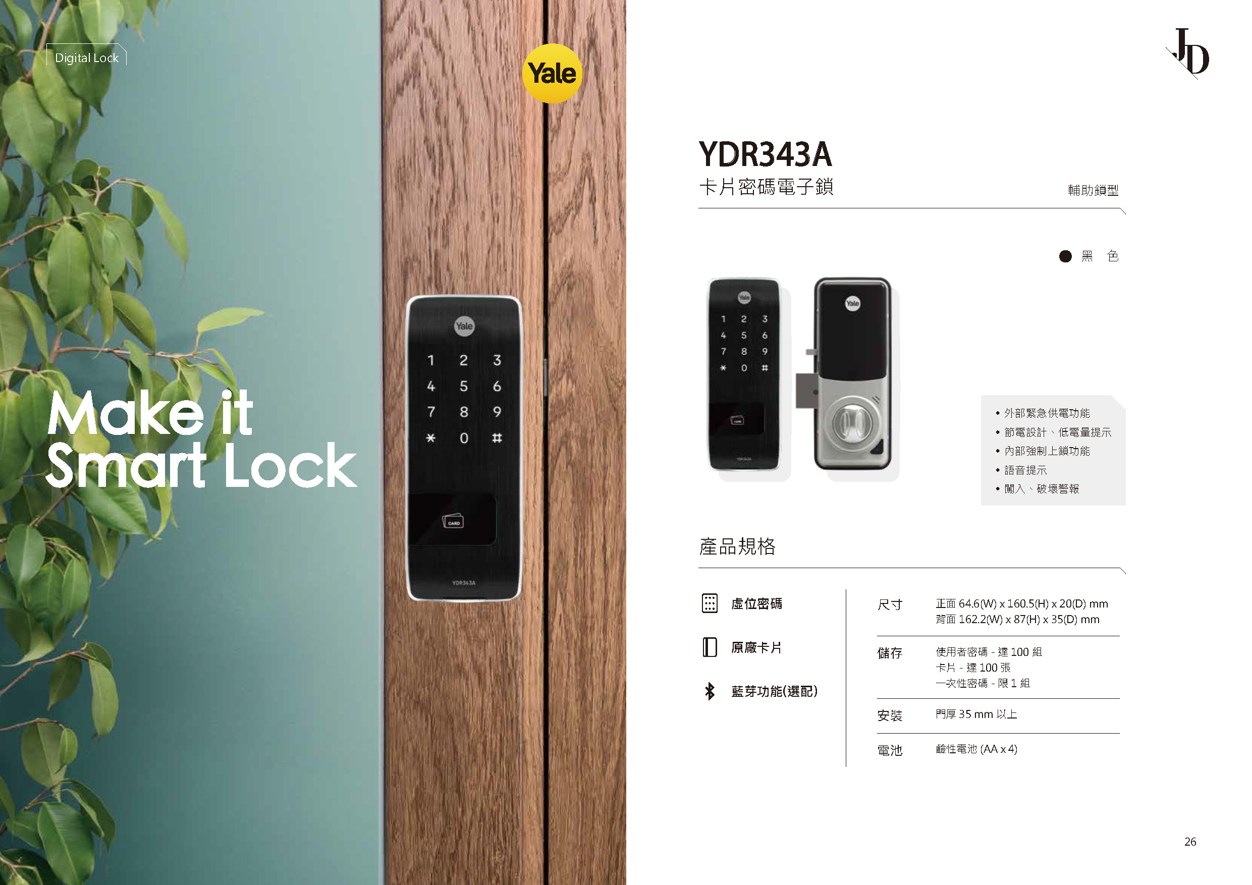 耶魯 Yale YDR343A 卡片密碼電子鎖