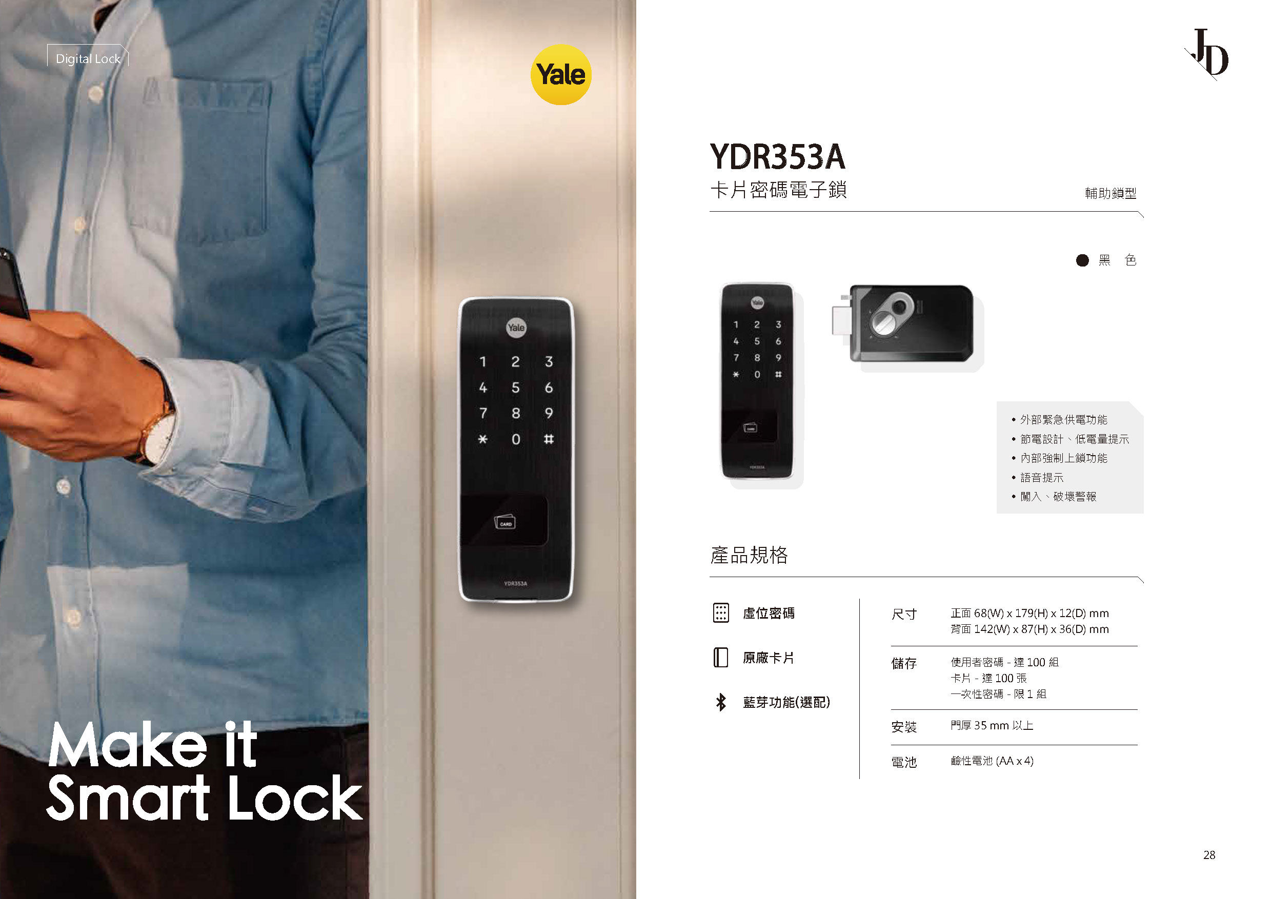 耶魯 Yale YDR353A 卡片密碼電子鎖