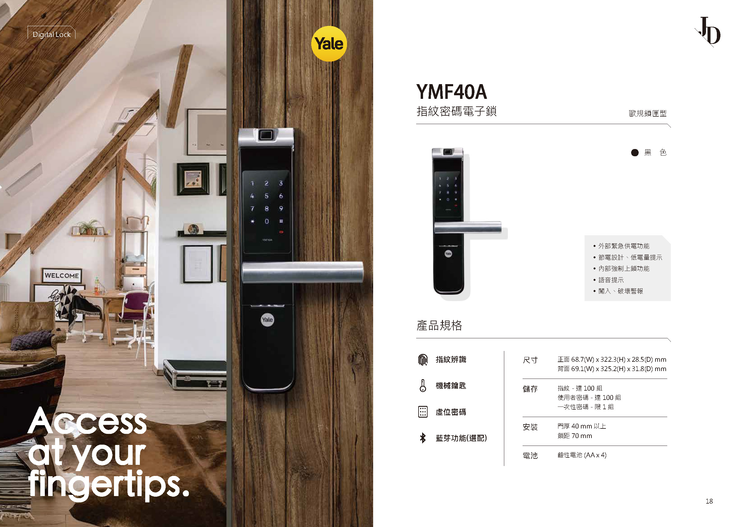 耶魯 Yale YMF40A 指紋密碼電子鎖