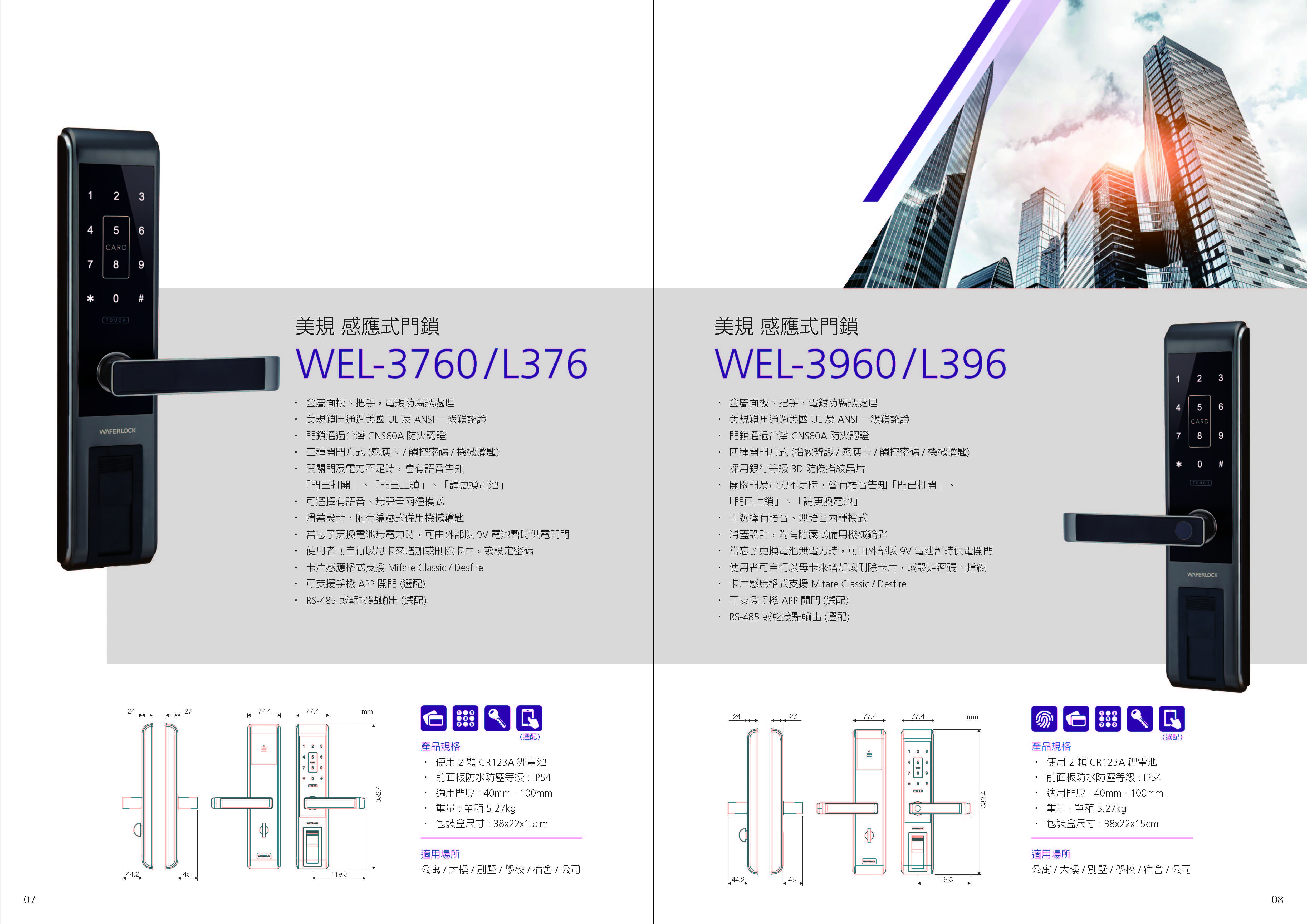 華豫寧WaferLock電子感應門鎖系統 L376/L396