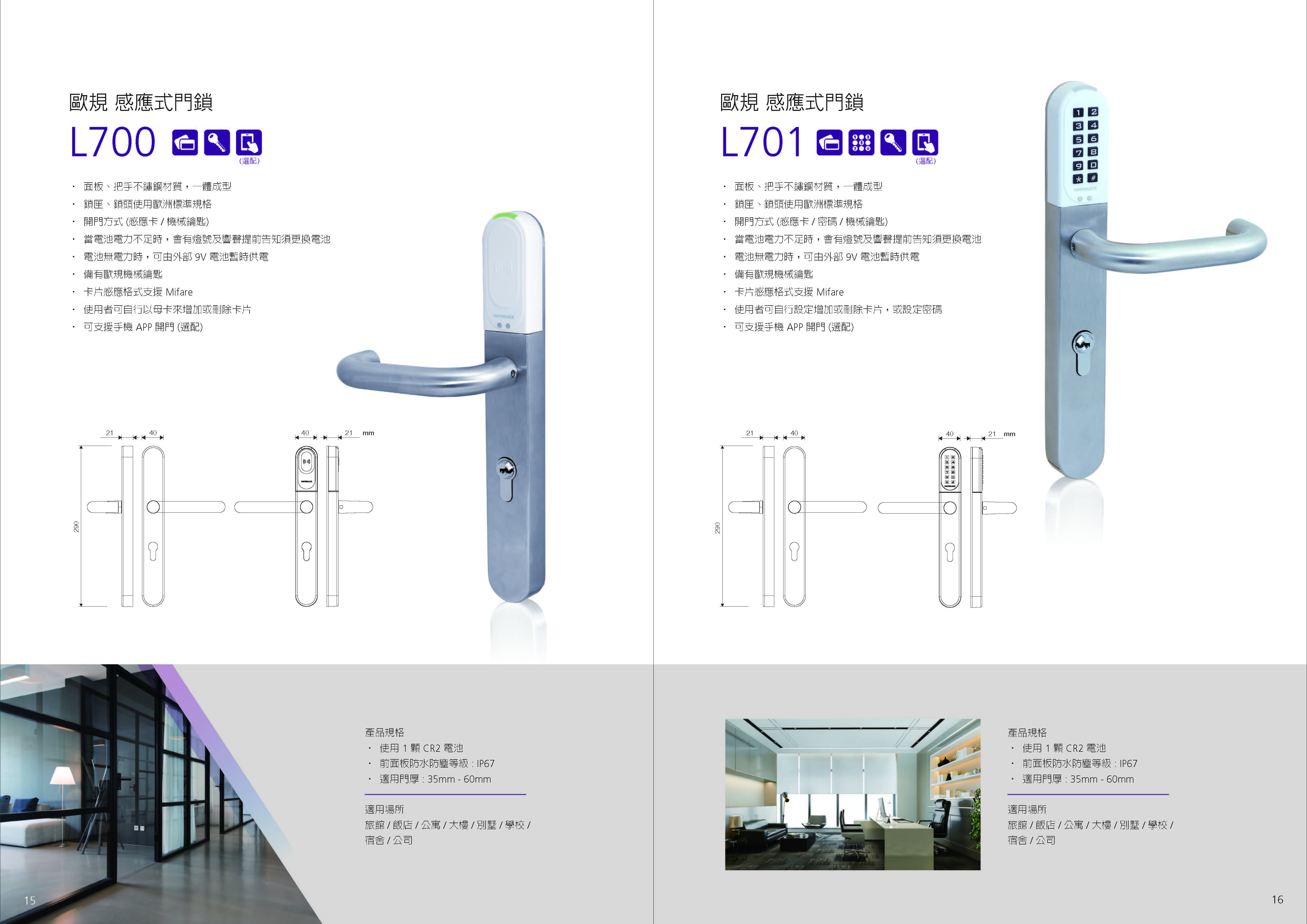 華豫寧WaferLock電子感應門鎖系統 L700/L701