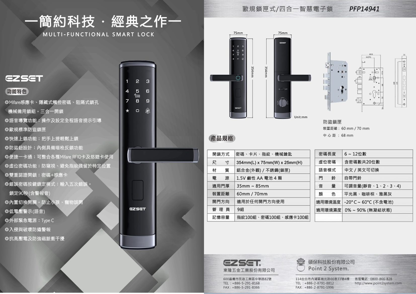 東隆EZSET PFP 歐規鎖匣式四合一智慧電子鎖