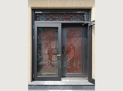 22.玄關門-富貴有餘壓花鋼板門【外玄關鑄鋁花玻璃門】