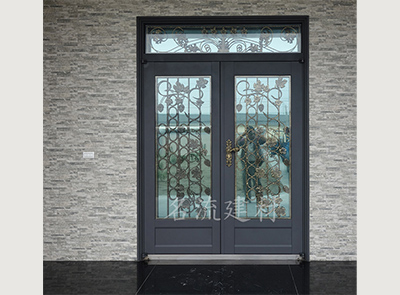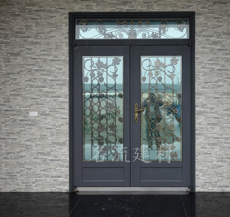 32.玄關門-葡萄藤鍛造玻璃門