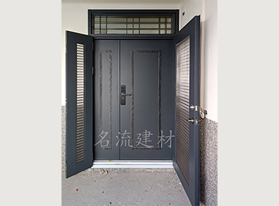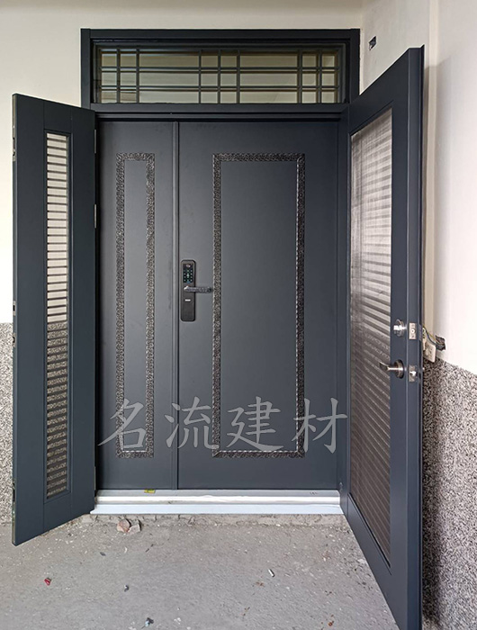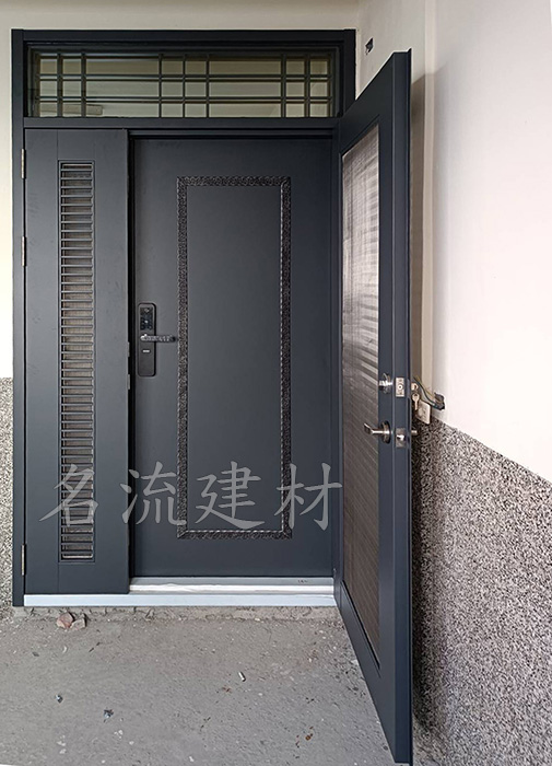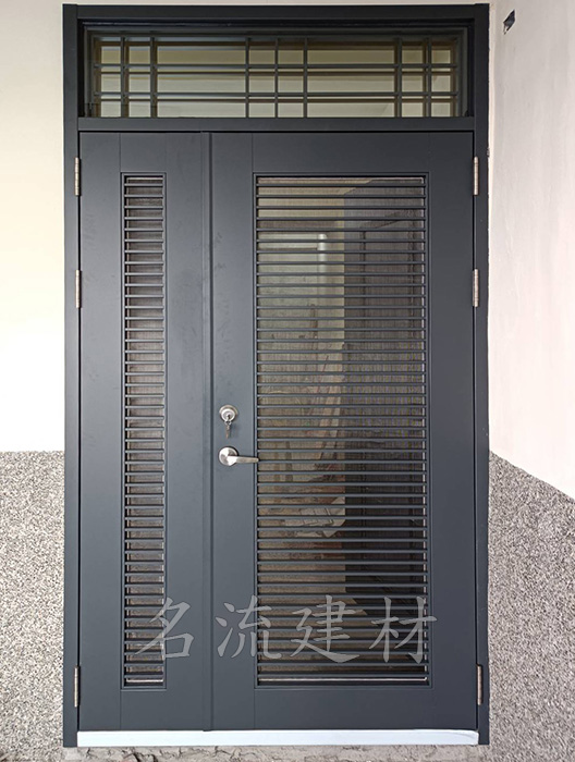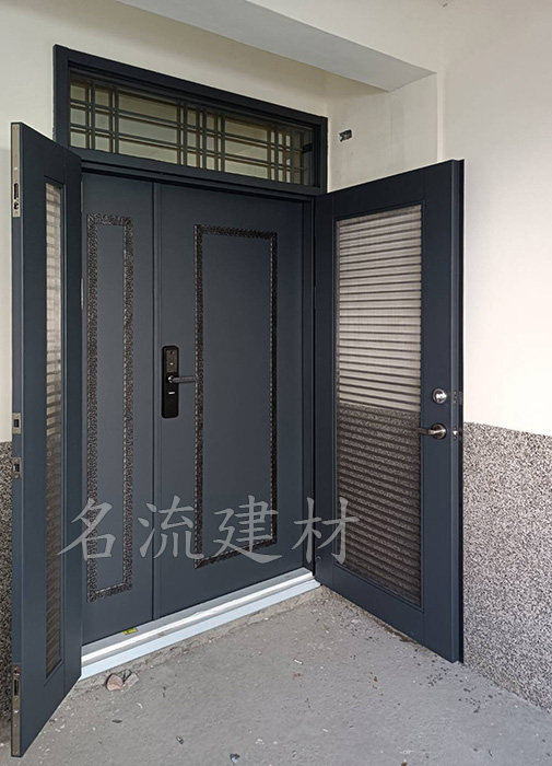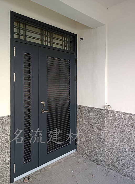 43.玄關門-手染鍛鐵飾框門【外玄關扁管橫格通風紗門】