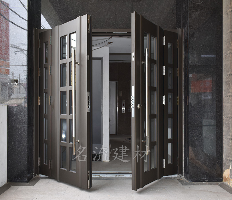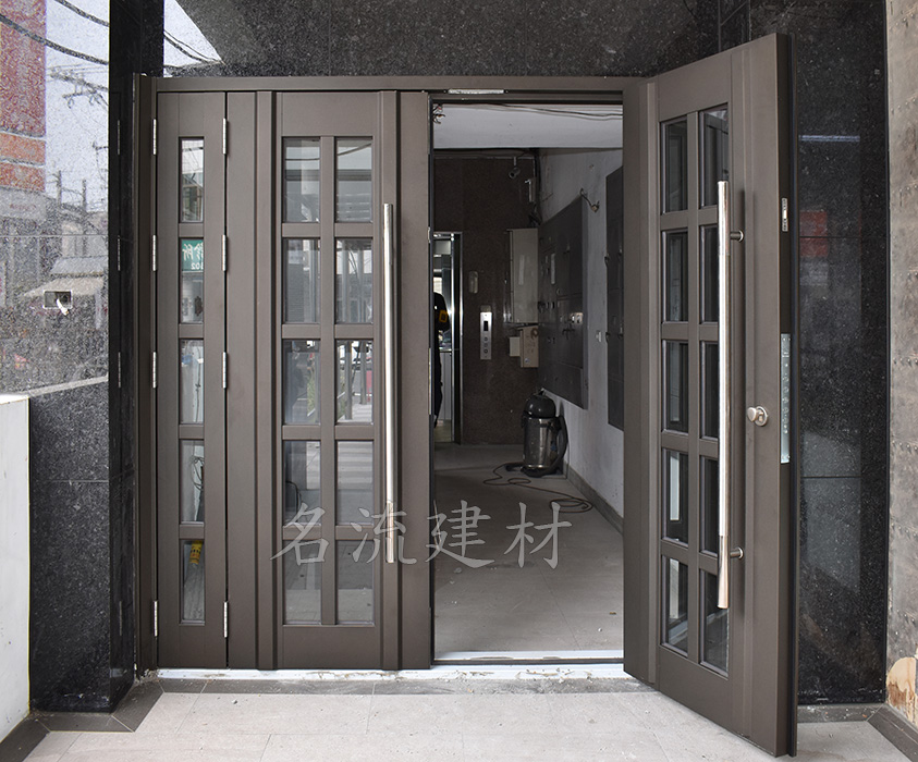 44.玄關門-立體扁管玻璃門附活動子扇